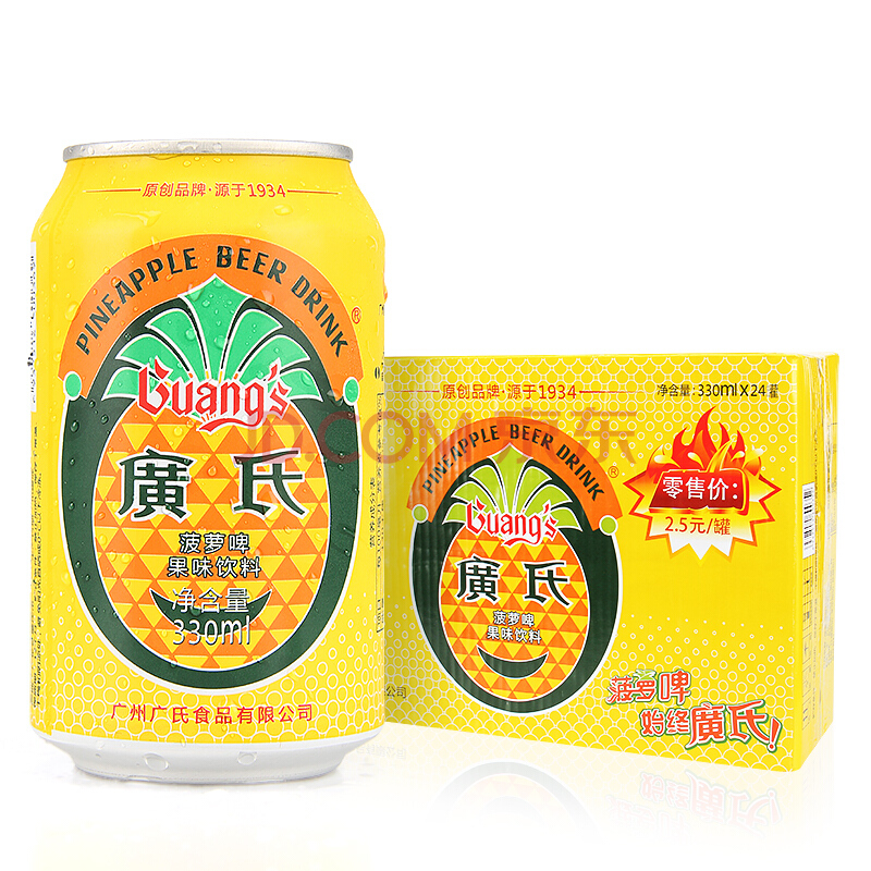 Guang’s Pineapple Drink is the first domestic brand for fruity beer drink in China. Founded in 1934, it is a large state-owned enterprise with a history of 80 years of wine production. Guang’s Pineapple Drink is a beer-based pineapple-flavored beverage made from malt, rice, sugar, and hop. Guang’s Pineapple Drink is cooked, saccharified, fermented and refined with care in a scientific method by perfectly combining the mellow wheat fragrance of beer and the aroma emitted by the good fruit from Linnan (high-quality sweet pineapple), thus creating a unique style with a strong fruity flavor, moderately sweet and sour taste, rich nutrition and fresh taste. Since then, China's first fruit beer brand has come into being.