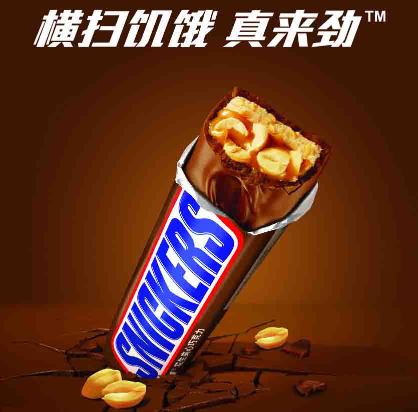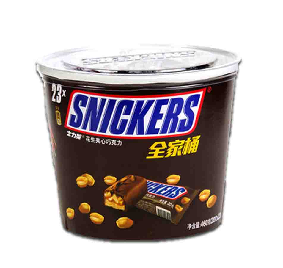 Snickers is a brand of chocolate produced by Mars Foods, and a brand of chocolate which has a sweet and salty taste for calorie taking. Snickers was launched in the United States in 1930. Its logo is independently composed of the English letters "SNICKERS", with red, white and blue colors. Deep blue capitalized letters form the main part of the logo, with a red frame and white hallow-out. Snickers peanut filling chocolate is a typical representative of calorie chocolate. Sales units include the smallest 20g, 35g (larger), 51g, 70g for two bars, 175g for several bars, 240g satisfaction set, and 460g enjoyment family set.
